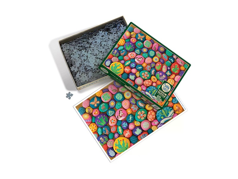Die vielfältigen Motive des 1000-teiligen Puzzles sprechen ein breites Publikum an. Cobble Hill Puzzle zeichnen sich durch Nachhaltigkeit aus. Die gelegte Grösse beträgt 68x49cm.