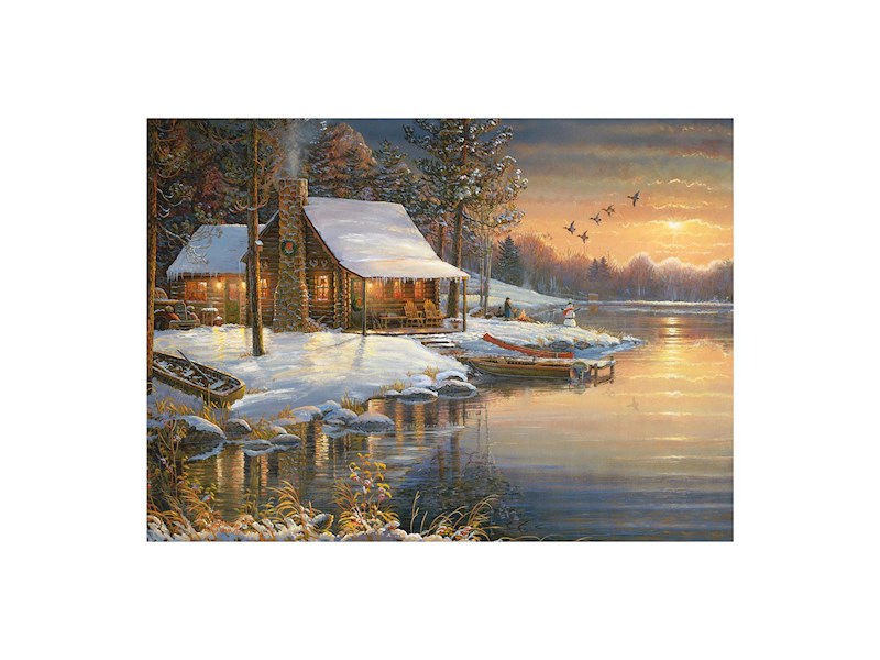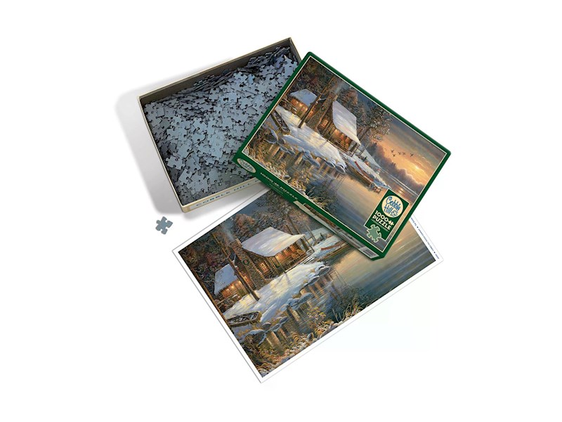 Blockhütte im Winter 1000 Teile