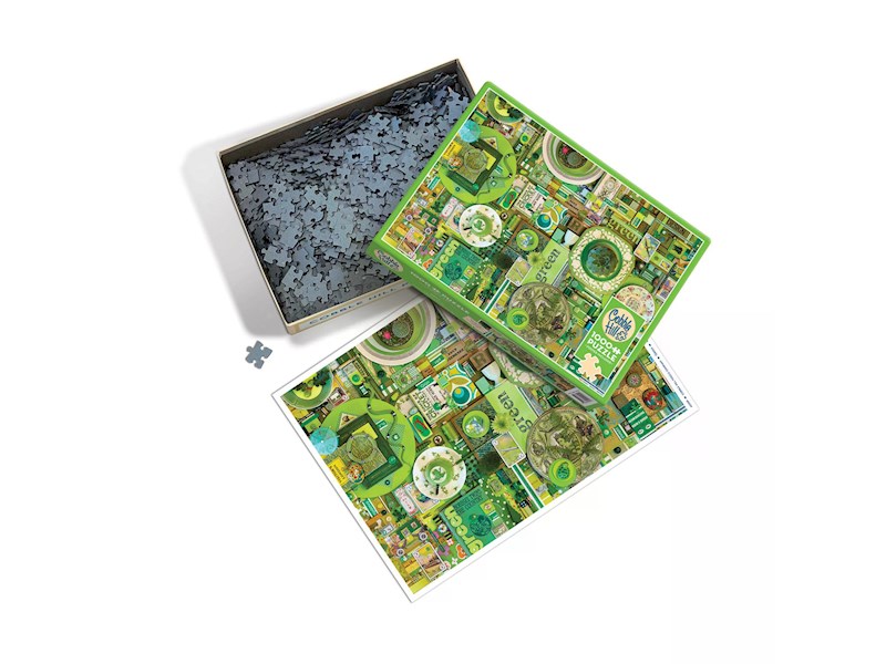 Die vielfältigen Motive des 1000-teiligen Puzzles sprechen ein breites Publikum an. Cobble Hill Puzzle zeichnen sich durch Nachhaltigkeit aus. Die gelegte Grösse beträgt 68x49cm.