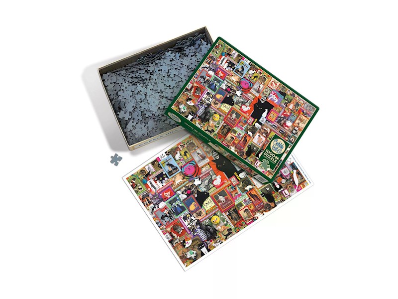 Die vielfältigen Motive des 1000-teiligen Puzzles sprechen ein breites Publikum an. Cobble Hill Puzzle zeichnen sich durch Nachhaltigkeit aus. Die gelegte Grösse beträgt 68x49cm.