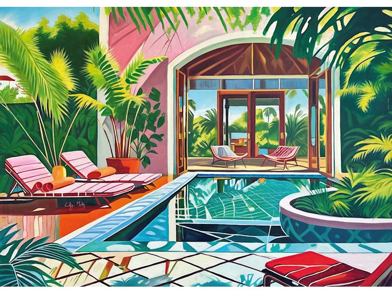 Ein genialer Weg in die Stress- und Sorglosigkeit: Nicht nur das Puzzeln selbst, sondern auch dieses intensiv-farbige Sommer-Motiv von Lilly Muth ist Entspannung pur. Gelegte Grösse: 50 x 70cm
