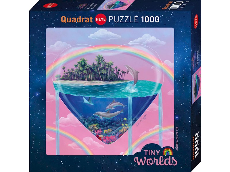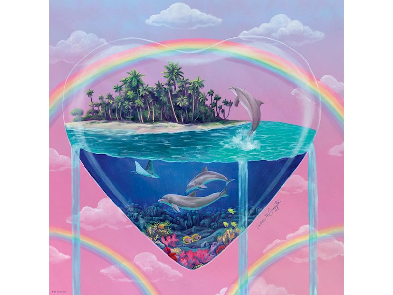 Frei, fröhlich und friedlich toben die Delphine in der herzallerliebsten Fantasiewelt der amerikanischen Künstlerin Andrea Guzzetta. Ein Ort zum Sich-hin-puzzeln-wollen! Gelegte Grösse: 56 x 56cm