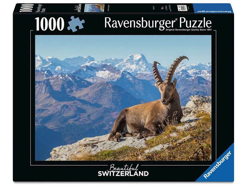 Entdecken Sie die Schweiz Stück für Stück mit dem Puzzle Steinbock im Toggenburg 1000T und lernen Sie das Land von seiner schönsten Seite kennen. Ravensburger Puzzles bedeuten Puzzlespass in Premium Qualität. Puzzleteile, charakteristisch und einzigartig dank handgefertigter Stanzwerkzeuge. Die jahrzehntelange Erfahrung in der Puzzleproduktion sowie der hohe Qualitätsanspruch lassen die Herzen der Puzzler höher schlagen und lässt erleben, wie eins zum andern passt.