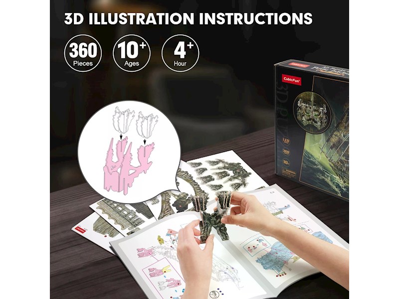 Aufregende Piratenabenteuer warten mit dem 3D Puzzle zum Flying Dutchman auf begeisterte Puzzler und Modellbauerinnen. Das berühmte Geisterschiff, auch bekannt aus Pirates of the Carribean, wird damit zum Leben erweckt und sorgt für stundenlangen Spaß. Wie ein richtiges Geisterschiff leuchtet das Schiff dank der LED-Lichter im Dunkeln. Die vielen Details und die genaue Anleitung machen dieses Schiff zu einem einzigartigen Erlebnis. Länge: 68cm.