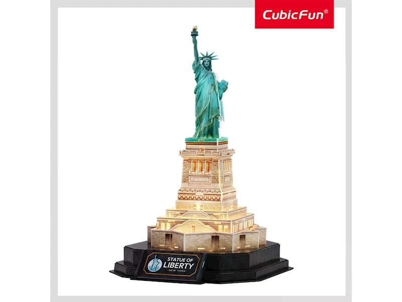 Mit diesem 3D Puzzle von CubicFun kann ohne Leim und Schere die berühmte Freiheitsstatue von New York als 3D Modell nachgebaut werden. Dank der vielen bunten LED Lichter erstrahlt die Freiheitsstatue bei Nacht und wird zum besonderen Blickfang im Zimmer. Die bebilderte Anleitung führt Schritt für Schritt zum fertigen 3D Puzzle. Die hochwertigen Teile lassen auch mehrfaches Aufbauen zu. Batterien (3 x AAA) sind nicht im Lieferumfang enthalten. Höhe: 33cm