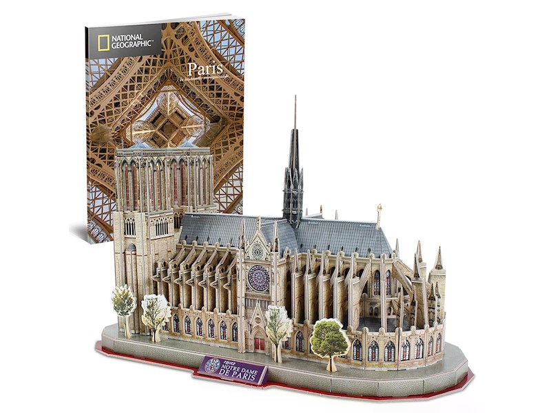 Mit diesem 3D Puzzle von CubicFun kann ohne Leim und Schere das beliebte Wahrzeichen Notre-Dame in Paris als 3D Modell nachgebaut werden. Die bebilderte Anleitung führt Schritt für Schritt zum fertigen 3D Puzzle. Die hochwertigen Teile lassen auch mehrfaches Aufbauen zu. Zusammen mit dem beliegenden Heft von National Geographic wird daraus eine Reise nach Paris. Höhe: 24cm.