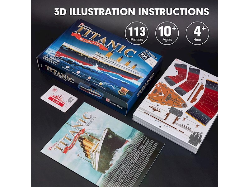 Dieses große CubicFun 3D Puzzle Titanic kombiniert Puzzlespaß und Modellbau. Das berühmte Schiff wird ohne Leim und Schere zusammengebaut und die hochwertigen Teile lassen auch mehrfaches Aufbauen zu. Stundenlanger Puzzlespaß ist garantiert. Länge: 87.90cm.
