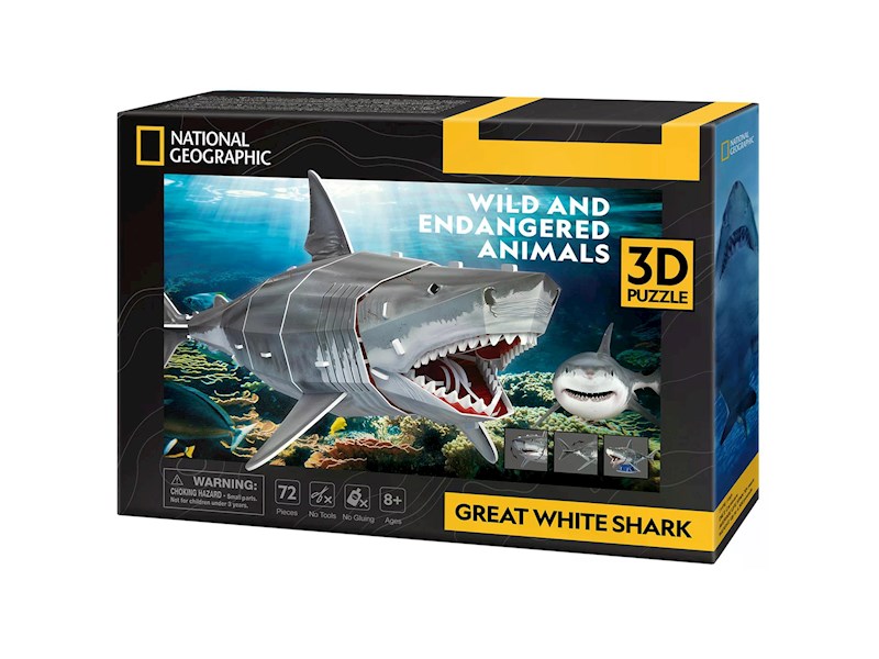 Mit diesem 3D Puzzle von CubicFun kann ohne Leim und Schere der Weiße Hai als Modell gebaut werden. Die bebilderte Anleitung führt Schritt für Schritt zum fertigen 3D Puzzle. Die hochwertigen Teile lassen auch mehrfaches Aufbauen zu. Perfekt für Tierfans, die mit dem Produkt gleichzeitig auch National Geographic unterstützen.