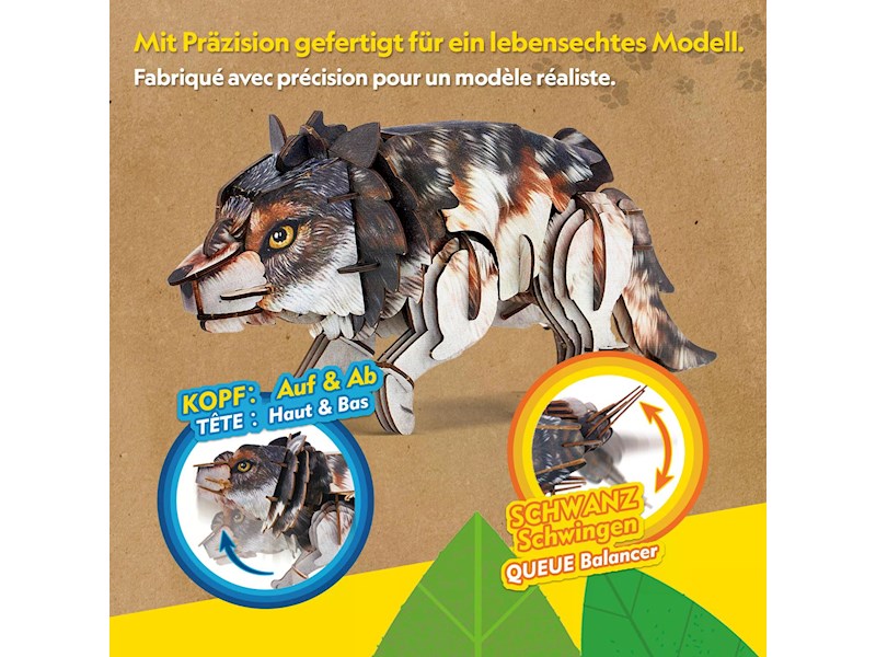 Mit diesem 3D Puzzle von CubicFun kann ohne Leim und Schere der Wolf als Modell gebaut werden. Die bebilderte Anleitung führt Schritt für Schritt zum fertigen 3D Puzzle. Die hochwertigen Teile lassen auch mehrfaches Aufbauen zu. Perfekt für Tierfans, die mit dem Produkt gleichzeitig auch National Geographic unterstützen.