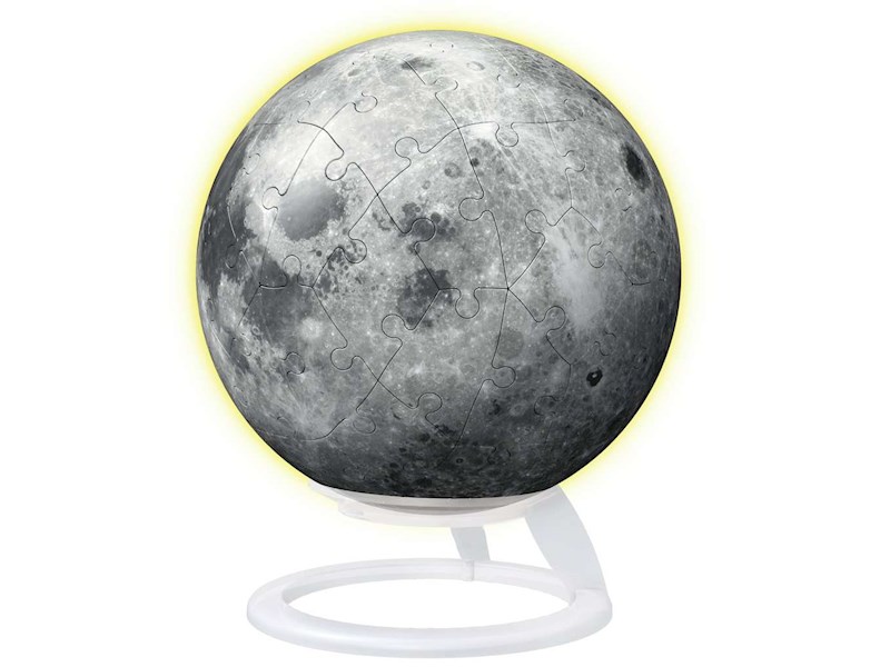 Mit dem Puzzle-Ball „The Moon“ können Puzzlebegeisterte und Vollmond-Fans eine Miniaturversion des Mondes in 3D nachbauen und ganz genau unter die Lupe nehmen.