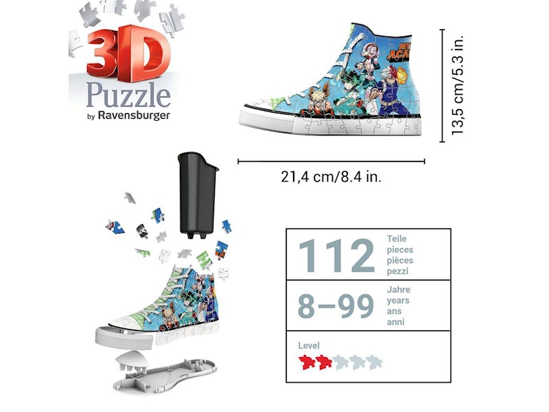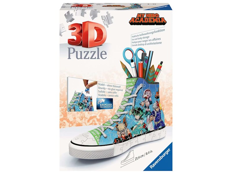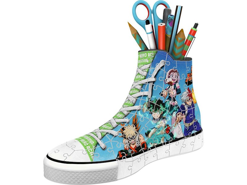 Mit diesem 3D Puzzle-Sneaker kannst du deinen Lieblings-Manga zu dir nach Hause holen! Der coole Sneaker im My Hero Academia Design ist nicht nur ein dekorativer Blickfang auf jedem Schreibtisch, sondern wieder auch reichlich Platz für alle Utensilien.