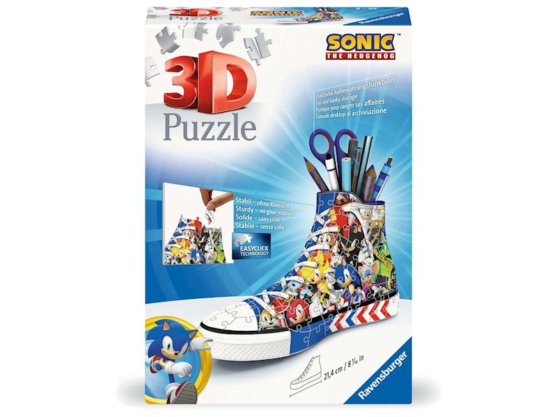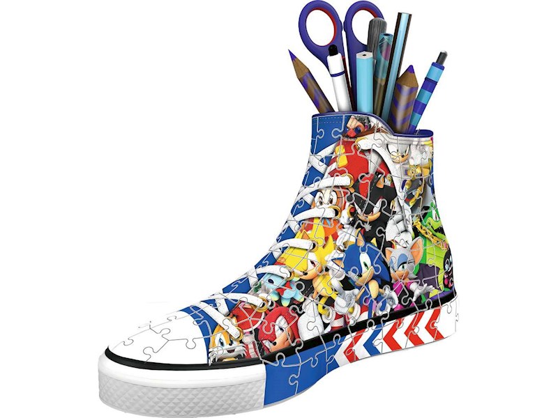 Mit diesem 3D Puzzle-Sneaker kannst du Sonic und seine Freunde zu dir nach Hause holen! Der coole Sneaker im Sonic the Hedgehog Design ist nicht nur ein dekorativer Blickfang auf jedem Schreibtisch, sondern wieder auch reichlich Platz für alle Utensilien.