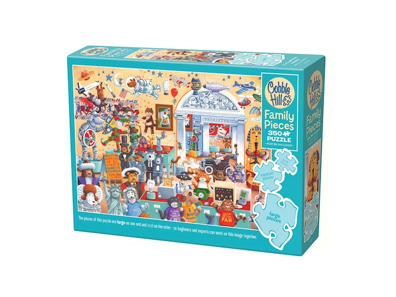 Das erste Puzzle bei dem alle Familienmitglieder gleichzeitig puzzeln können. Das Puzzle ist aufgeteilt in 3 verschiedene Bereiche mit unterschiedlichen Puzzle-Teile-Grössen. So kann jedes Mitglied ungestört seiner Fähigkeitsstufe entsprechend zum Puzzle- und Gemeinschaftserlebnis beitragen. Cobble Hill Puzzle zeichnen sich durch Nachhaltigkeit aus. Die gelegte Grösse beträgt 68x49cm.