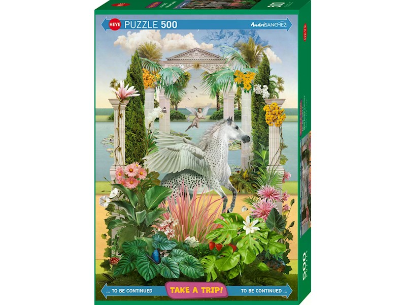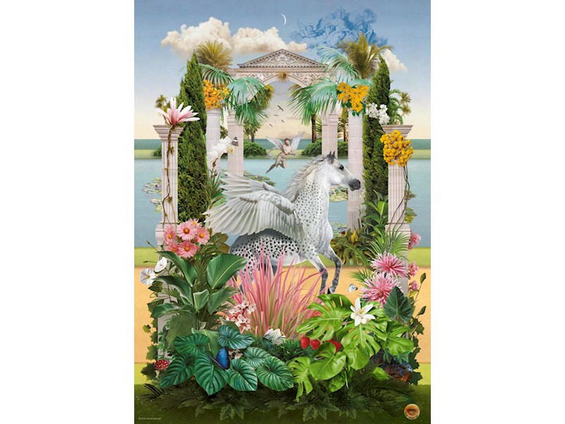Und weiter geht es auf Marino Deganos Künstler-Straße: André Sanchez lässt ein geflügeltes Ross auf ihr dahintraben, flankiert von edlen Bauwerken und Pflanzen., Gelegte Grösse: 35 x 50cm