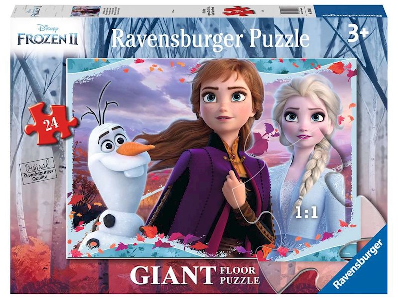 Ravensburger Giant Floor Puzzles – Puzzlespass im Grossformat! Aus 24 extra grossen und stabilen Puzzleteilen entsteht ein tolles Motiv mit Anna, Elsa und Olaf aus dem beliebten Disney-Film „Die Eiskönigin 2“ im Format 69 x 49 cm. Stück für Stück können Kinder ab 3 Jahren in die fantastische Welt der Eiskönigin eintauchen und dabei spielerisch Konzentration und Feinmotorik trainieren. Giant Floor Puzzles machen alleine und gemeinsam Spass.