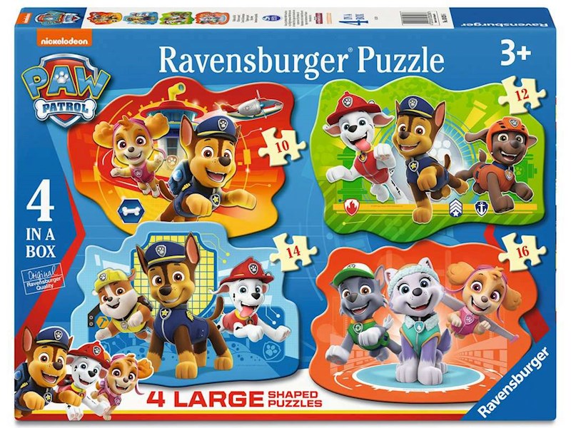 Altersgerechter Puzzle-Spass für kleine PAW Patrol Fans: Auf vier farbenfrohen Puzzles warten die PAW Patrol Helden Chase, Marshall, Rubble, Rocky, Zuma, Skye und Everest darauf, zu Hilfe gerufen zu werden. Wo immer es einen Notfall gibt, sind sie zur Stelle! Jedes Puzzle hat einen unterschiedlichen farblichen Hintergrund. So fällt es kleinen Händen leichter, Teile zu finden, zu sortieren und an die richtige Stelle zu legen. Die Teilezahl variiert von Motiv zu Motiv und ermöglicht es, mit wachsendem Geschick den Schwierigkeitsgrad zu steigern.
