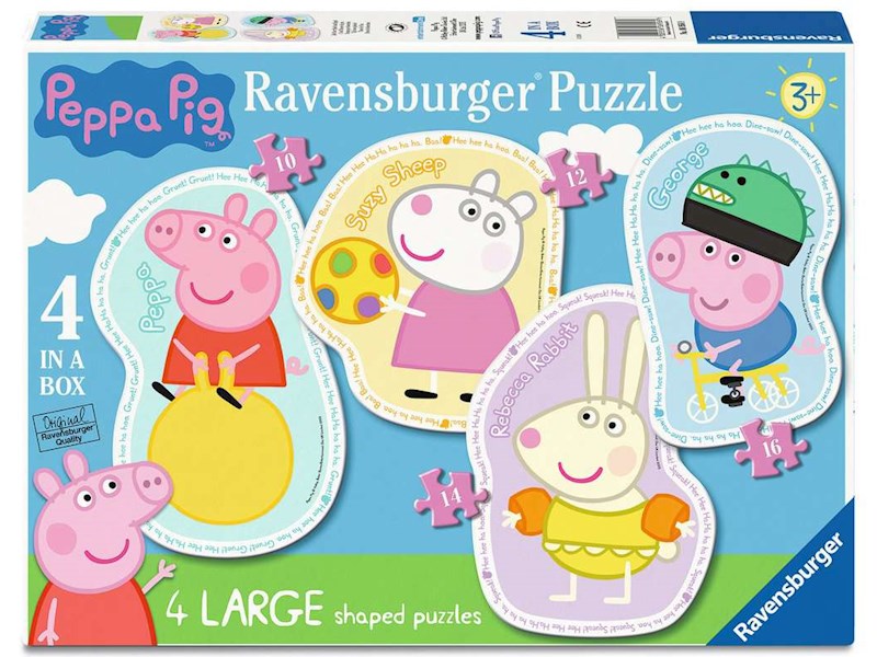 Vierfacher Puzzlespass: Entdecke Peppa Pig und ihre Freunde auf 4 farbenfrohen Puzzlemotiven! Jedes der vier Puzzles ist formgestanzt und etwa 25 x 35 cm gross; die grossen Puzzleteile aus extradickem Karton variieren von 10 Teilen bis 16 Teilen und sind perfekt geeignet für Kinder ab 3 Jahren. Beim Puzzeln trainieren Kinder spielerisch ihre Konzentration und Feinmotorik und haben dabei jede Menge Spass.