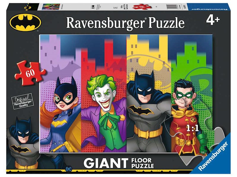 Ravensburger Giant Floor Puzzles – Puzzlespass im Grossformat! Aus 60 extra grossen und stabilen Puzzleteilen entsteht ein tolles Motiv mit den beliebten Hauptfiguren aus der Zeichentrickserie „Batman“ im Format 69 x 49 cm. Stück für Stück können Kinder ab 4 Jahren in fantastische Welten eintauchen und dabei spielerisch Konzentration und Feinmotorik trainieren. Giant Floor Puzzles machen alleine und gemeinsam Spass.