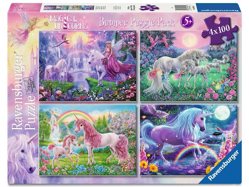 Hier steckt mehr drin! 4 Puzzles mit jeweils 100 Teilen: Vierfacher Puzzlespass für Kinder ab 5 Jahren. Unsere Puzzles werden in exzellenter Verarbeitungsqualität mit Material aus nachhaltiger Forstwirtschaft gefertigt. Stück für Stück entstehen 4 wunderschöne, magische Einhorn-Motive. Beim Puzzeln können Kinder in fantastische Welten eintauchen und dabei spielerisch Konzentration und Feinmotorik trainieren.