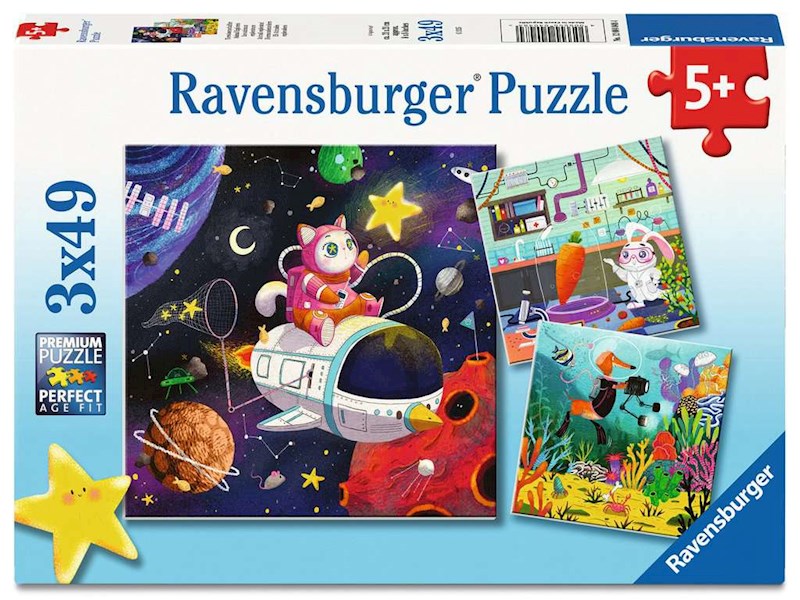 Kids In Science 3x49p. Entdecken Sie die perfekte Passform! Ravensburger hat für jedes Kind das passende Puzzle. Mit interessanten Motiven und strategisch günstigen Teilchengrössen sowie einer Vielzahl von Formaten ist der Erfolg für alle Altersgruppen und Fähigkeiten garantiert. Geniessen Sie Ravensburger Qualität mit dieser familienfreundlichen Aktivität! Ab 5 Jahren.