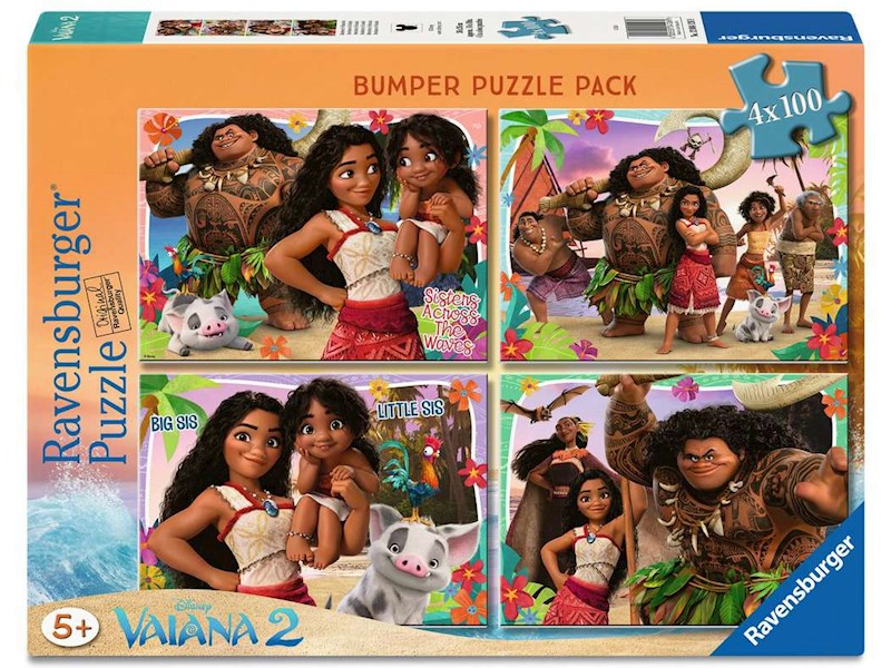 Hier steckt mehr drin: 4 Puzzles mit jeweils 100 Teilen! Vierfacher Puzzlespass für Kinder ab ca. 5 Jahren. Unsere Puzzles werden in exzellenter Verarbeitungsqualität mit Material aus nachhaltiger Forstwirtschaft gefertigt. Stück für Stück entstehen 4 wunderschöne Motive aus dem bekannten Disney-Film "Vaiana 2". Beim Puzzeln können Kinder in fantastische Welten eintauchen und dabei spielerisch Konzentration und Feinmotorik trainieren. Viermal Puzzeln, viermal Spass!