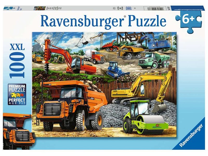 Es ist viel los auf der Baustelle, viele schwere Baufahrzeuge sind im Einsatz! Was wird hier wohl gebaut? Die Fahrer der Muldenkipper, Bagger, Walzen, Raupenplanierraupen, Bohrgeräte, Betonmischer und Kräne haben offenbar jede Menge zu tun. Welches Fahrzeug würdest du gerne fahren? Das Zusammenbauen von Puzzles fördert wertvolle Fähigkeiten und hilft durch wiederholtes Üben dabei, die Hand-Augen-Koordination, die Feinmotorik und die Problemlösungsfähigkeit zu entwickeln – und das bei jeder Menge Spass!