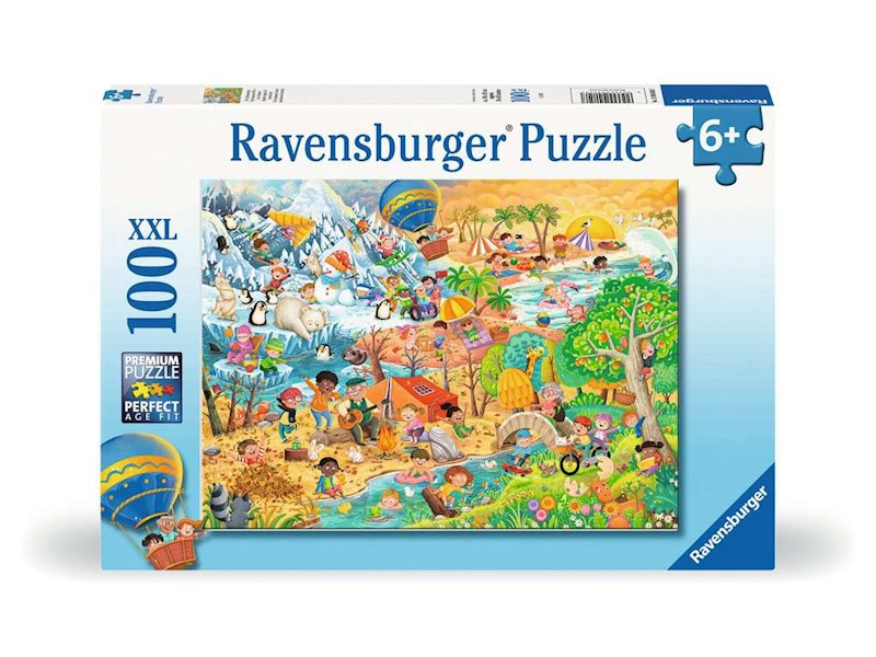 Erleben Sie die Schönheit und Aufregung der wechselnden Jahreszeiten mit unserem 100-teiligen Puzzle „Four Seasons of Fun“ (Vier Jahreszeiten voller Spass). Dieses entzückende Puzzle zeigt vier lebendige Szenen, die jeweils eine andere Jahreszeit darstellen – Frühling, Sommer, Herbst und Winter. Von blühenden Blumen und sonnigen Stränden bis hin zu buntem Herbstlaub und verschneiten Landschaften – jedes Teil erweckt den einzigartigen Charme und die Aktivitäten jeder Jahreszeit zum Leben.