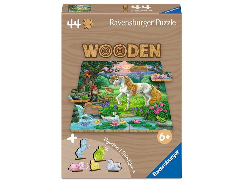 HOLZ Einhorn 44 Teile. Entdecken Sie die perfekte Passform! Ravensburger hat für jedes Kind das passende Puzzle. Mit interessanten Motiven, strategisch dimensionierten Teilen und einer Vielzahl von Formaten ist der Erfolg für alle Altersgruppen und Fähigkeiten garantiert. Geniessen Sie Ravensburger Qualität mit dieser familienfreundlichen Aktivität! Ab 6 Jahren.