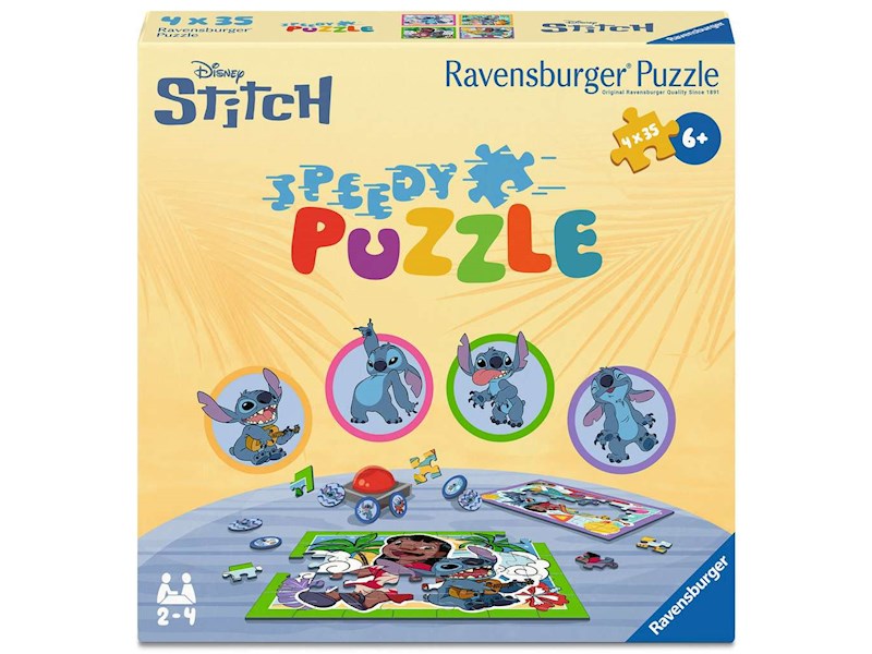 Auf die Puzzle, fertig, los! Mit der lustigen Speedy Puzzle-Reihe von Ravensburger puzzeln Kinder ab 6 Jahren um die Wette. 2-4 Puzzler treten gegeneinander an und versuchen Ihr Puzzle und die lustigen Aufgaben der Speedy Chips so schnell wie möglich fertigzustellen. Bei Speedy Puzzle wird das Puzzeln zur interaktiven Challenge. Hierbei trainieren Kinder nicht nur ihre Feinmotorik, Konzentration und Ausdauer, sondern haben dabei auch jede Menge Spass.