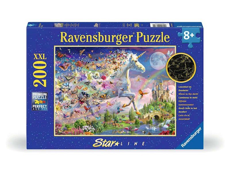 Im Kinderzimmer wird es dunkel... Jedoch nicht ganz! Denn das Star Line Puzzle mit Leuchtfarbe verbreitet einen magischen Schein, selbst wenn das Licht schon längst erloschen ist. Zusätzliche Leuchtfarbe auf der Oberfläche lässt das Motiv hell erstrahlen. Mit 200 Teilen im XXL-Format sind sie ideal geeignet für Kinder ab 8 Jahren.