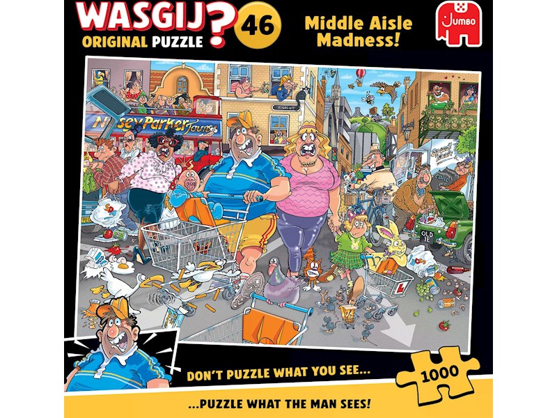 JUMBO • Puzzle • JUM-1110100505CHF 25.20sofort, ab LagerIn den Warenkorb Middle Aisle Madness - Anz. Teile: 1000, Wasgij OriginalProdukttyp:PuzzleAlter:14 - 99 JahreArtikelNr:JUM-1110100505Hersteller:JUMBOHerstellerNr:1110100505EAN:8721017602842Erschienen im:März 2025Gleich mitbestellen (3)Ersatzteile & Zubehör (3)Wasgij Original ist ein Was siehst du? - Puzzle. Mithilfe deiner Fantasie und der gelieferten Hinweise puzzelst du, was die auf der Schachtel dargestellten Figuren gerade sehen.mehr AnzeigenGleich mitbestellenPuzzle Conserver (3)HEY-80588SCH-57999RAV-17954Ersatzteile & ZubehörPuzzle ConserverAnzeigenAusblendenHEY-80588SCH-57999RAV-17954Erforderliches ZubehörKomplettes Produkt, kein "erforderliches Zubehör" notwendig