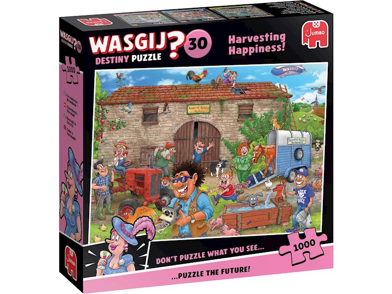 Wasgij Destiny ist ein ''Zeitreise'' - Puzzle. Mithilfe deiner Fantasie und der gelieferten Hinweise puzzelst du, wie die auf der Schachtel dargestellten Figuren und die Szenerie in der Zukunft aussehen werden.