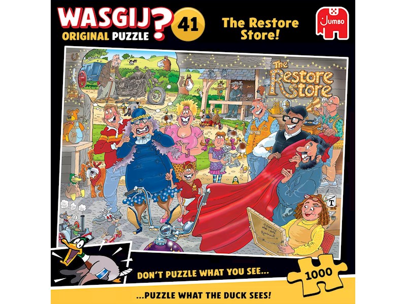 JUMBO • Puzzle • JUM-1110100583CHF 25.20Wird für Sie bestelltIn den Warenkorb The restore shop - Anz. Teile: 1000, Wasgij OriginalProdukttyp:PuzzleAlter:14 - 99 JahreArtikelNr:JUM-1110100583Hersteller:JUMBOHerstellerNr:1110100583EAN:8721017604044Erschienen im:März 2025Gleich mitbestellen (3)Ersatzteile & Zubehör (3)Wasgij Original ist ein Was siehst du? - Puzzle. Mithilfe deiner Fantasie und der gelieferten Hinweise puzzelst du, was die auf der Schachtel dargestellten Figuren gerade sehen.mehr AnzeigenGleich mitbestellenPuzzle Conserver (3)HEY-80588SCH-57999RAV-17954Ersatzteile & ZubehörPuzzle ConserverAnzeigenAusblendenHEY-80588SCH-57999RAV-17954Erforderliches ZubehörKomplettes Produkt, kein "erforderliches Zubehör" notwendig